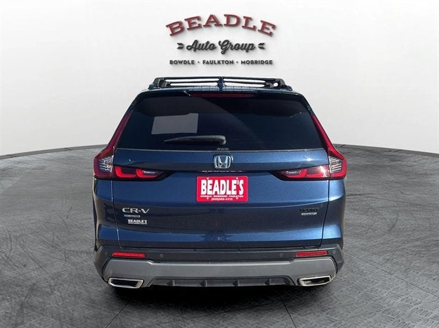 2023 Honda CR-V Hybrid Sport Touring AWD for Sale in Bowdle, SD Efficiency meets luxury in this 2023 Honda CR-V Hybrid Sport Touring AWD. With its advanced hybrid powertrain, upscale interior, and confident all-wheel drive capability, this CR-V delivers a smooth, fuel-efficient ride thatâs perfect for South Dakota drivers who demand comfort, reliability, and style. 2023 Honda CR-V Hybrid Sport Touring AWD â Stock #5T229A Drivetrain: All-Wheel Drive (AWD) Engine: 2.0L I4 Hybrid Transmission: Automatic Exterior Color: Blue Interior: Black Leather Mileage: 27,569 miles Fuel Economy: 40 MPG City / 34 MPG Highway Body Style: Sport Utility (SUV) Key Features Hybrid Powertrain: 2.0L Atkinson-Cycle 4-cylinder engine paired with two electric motors for efficient, responsive power All-Wheel Drive: Intelligent Real Time AWD⢠with Intelligent Control System⢠Exterior Highlights: LED Headlights, Hands-Free Power Tailgate, Roof Rails, and 19-inch Alloy Wheels Interior Luxury: Heated Leather Seats, Heated Steering Wheel, Dual-Zone Automatic Climate Control, and Ambient Lighting Infotainment: 9-inch Touchscreen Display with Navigation, Wireless Apple CarPlay and Android Autoâ¢, and Premium Bose Audio System Driver Assistance: Honda Sensing Safety Suite â including Adaptive Cruise Control, Lane Keeping Assist, and Collision Mitigation Braking System⢠Convenience: Remote Engine Start, Smart Entry with Walk-Away Auto LockÂ, and Wireless Phone Charger Performance & Efficiency Engine Output: 204 Total System Horsepower Eco and Sport Drive Modes for Personalized Performance Regenerative Braking System for Optimized Battery Efficiency EPA-Estimated 40 MPG City / 34 MPG Highway Safety & Security Collision Mitigation Braking System⢠(CMBSâ¢) Road Departure Mitigation System (RDM) Blind Spot Information System with Cross Traffic Monitor Multi-Angle Rearview Camera Advanced Front Airbags and Side Curtain Airbags with Rollover Sensor Expert Insights According to Kelley Blue Book and Edmunds, the 2023 Honda CR-V Hybrid Sport Touring stands out with its refined cabin, impressive fuel economy, and strong resale value. Reviewers praise its premium interior finishes, responsive hybrid system, and confident all-weather traction. Visit Beadleâs Chrysler Center in Bowdle, SD See this 2023 Honda CR-V Hybrid Sport Touring AWD today at Beadleâs Chrysler Center in Bowdle, South Dakota. We proudly serve customers from Aberdeen, SD; Bismarck, ND; and Pierre