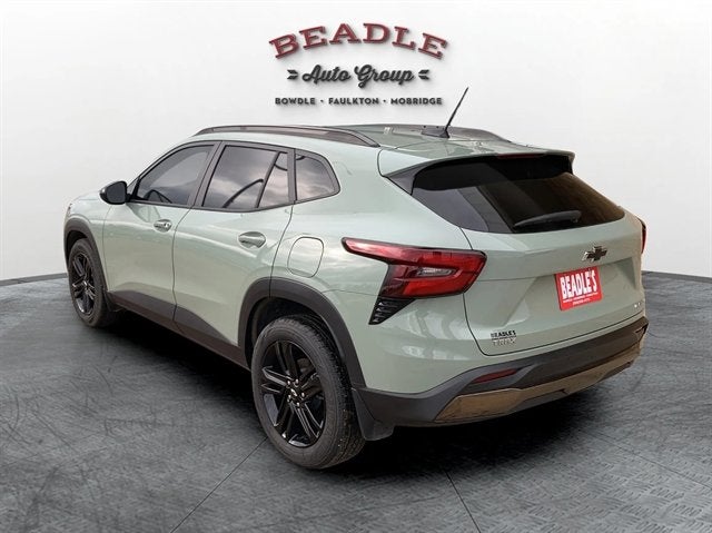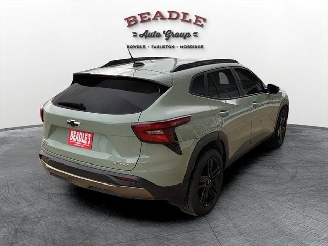 2025 Chevrolet Trax ACTIV for Sale in Mobridge, SD Beadle Chevrolet-GMC 2025 Chevrolet Trax ACTIV for Sale in Mobridge, SD Compact SUV style meets big capability in the 2025 Chevrolet Trax ACTIV, available now at Beadle Chevrolet-GMC in Mobridge, South Dakota. Finished in bold Cacti Green with a stylish Jet Black interior featuring Artemis Yellow accents, this Trax brings a unique mix of athletic design, comfort, and technology. Perfect for commutes through Aberdeen, SD, weekend trips to Bismarck, ND, or exploring the highways toward Pierre, SD. 2025 Chevrolet Trax ACTIV â Stock #5F228B Engine: 1.2L ECOTEC Turbo I3 Transmission: 6-Speed Automatic Drivetrain: Front-Wheel Drive (FWD) Exterior Color: Cacti Green Interior: Jet Black with Artemis Yellow Accents Wheels: 18`` Gloss Black Aluminum Fuel Economy: Estimated 30 MPG combined Driver Confidence Package: Adaptive Cruise Control, Rear Cross Traffic Alert, Lane Change Alert with Side Blind Zone Alert, and Rear Park Assist Chevy Safety Assist: Forward Collision Alert, Automatic Emergency Braking, Lane Keep Assist with Lane Departure Warning, Following Distance Indicator, and IntelliBeam Auto High Beams Interior Comfort: Heated Front Seats, Heated Steering Wheel, 8-Way Power Driverâs Seat, Automatic Climate Control Technology: 11`` HD Color Touchscreen, Wireless Apple CarPlay & Android Autoâ¢, Wi-Fi Hotspot Capability, and OnStar Connected Services Convenience: Keyless Open & Start, Remote Vehicle Start, Rear Vision Camera, Rear Liftgate, and 60/40 Split-Folding Rear Seat Design Highlights: ACTIV Sport Styling, Roof Rails, and Black Exterior Trim Expert Insights Cars.com and Kelley Blue Book praise the 2025 Chevy Trax for its roomy cabin, refined ride, and exceptional value. The ACTIV trim adds a sporty edge and rugged appearance, making it a standout among modern crossovers. Schedule a Test Drive in Mobridge, SD See the 2025 Chevrolet Trax ACTIV in person at Beadle Chevrolet-GMC in Mobridge, SD. Call 605-845-7277 to schedule your test drive or get more details. Our team proudly serves drivers from Aberdeen, SD, Bismarck, ND, and Pierre, SDâjust a short drive away for big-city style with small-town service.